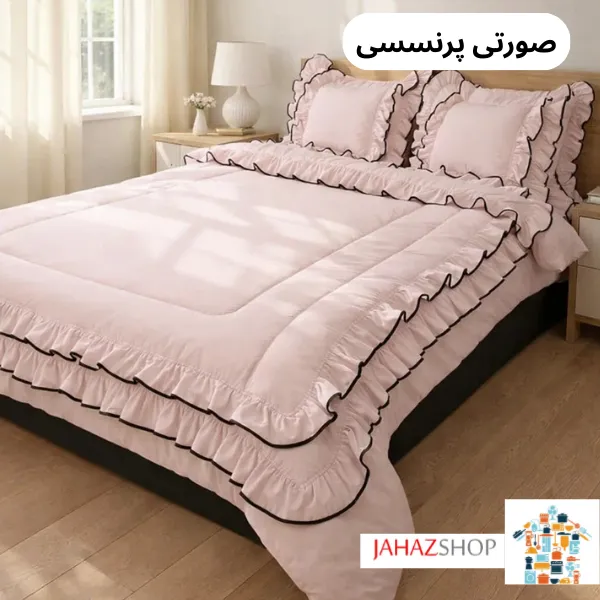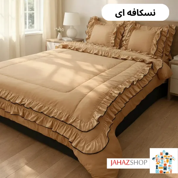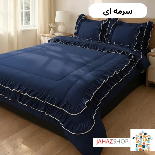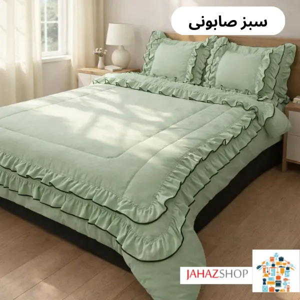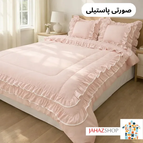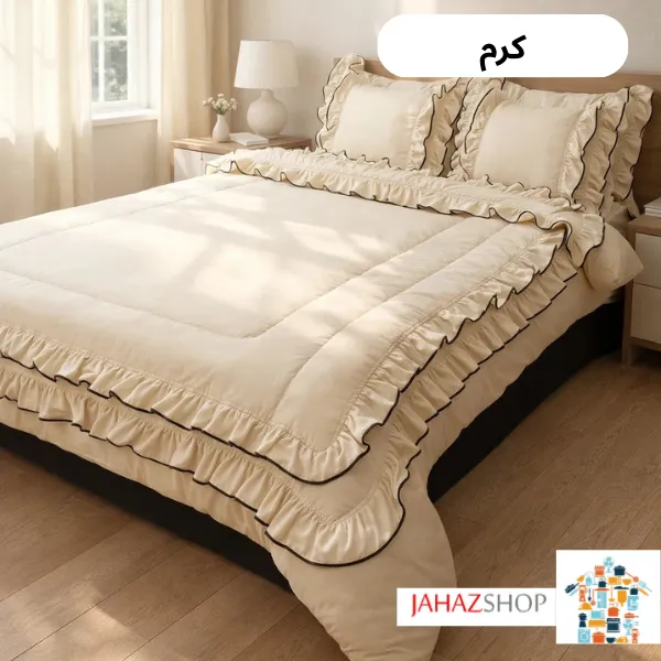 چین‌های دو لایه در قسمت لحاف، جلوه‌ای لطیف و خاص ایجاد کرده‌اند که بدون شلوغی و طرح‌های اغراق‌آمیز، فضایی آرام و دلنشین می‌سازد. فولدر دوزی‌های منظم در حاشیه‌ها باعث شده‌اند فرم چین‌ها مرتب بایستد و ظاهر محصول همیشه آراسته باقی بماند.