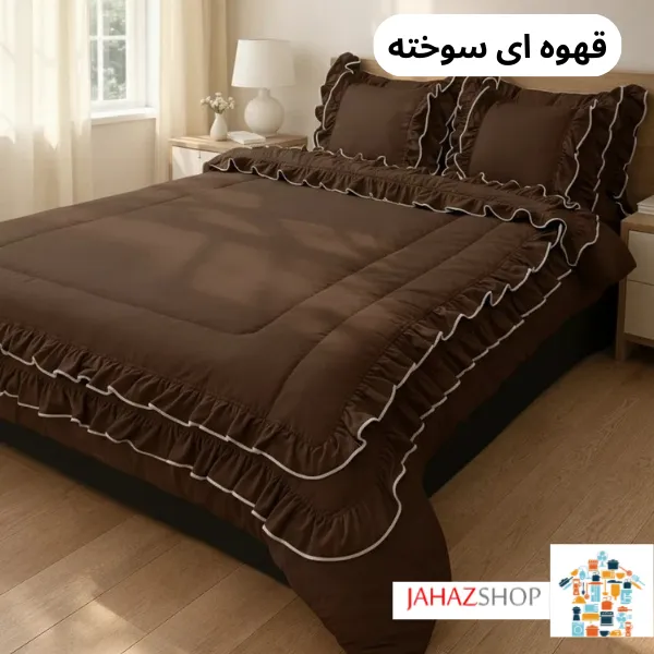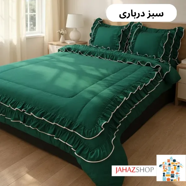 مدل دونفره سرویس روتختی چیندار فولدر دوزی مینیمال برای تخت‌های عرض 140، 160 و 180 سانتی‌متر قابل استفاده است و جلوه‌ای هماهنگ و مجلل در فضای اتاق ایجاد می‌کند.